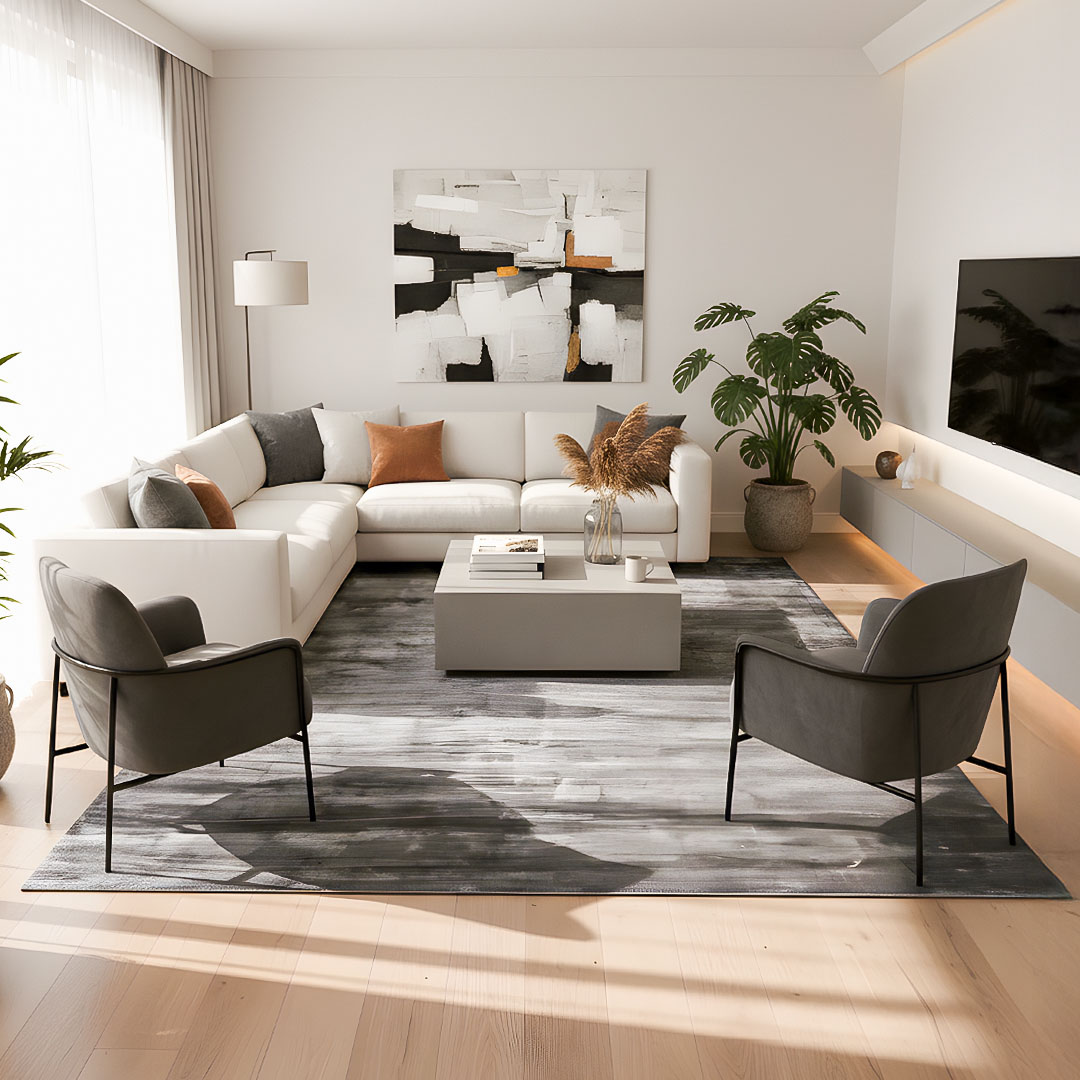 Met de FLAVIA in de kleur Grijs zit je altijd goed. Deze neutrale tint matcht moeiteloos met elke stijl en inrichting. Dankzij de velvet afwerking oogt het kleed luxe, zonder op de voorgrond te treden.