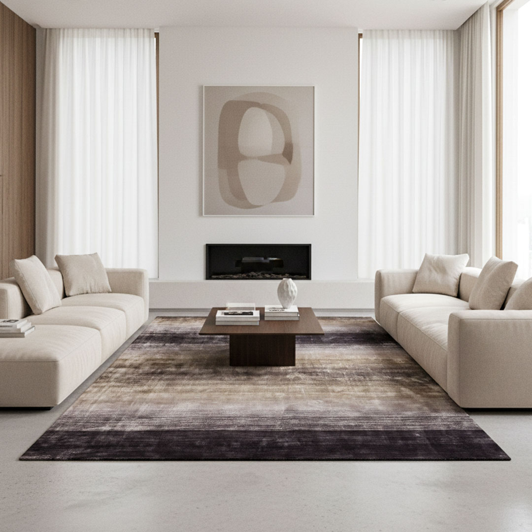 De RIGA in het Grijs brengt warmte en diepte samen in een stijlvol kleurverloop van grijs naar zachte bruintinten. Het kleed voegt moeiteloos sfeer toe en past in zowel moderne als klassieke interieurs.