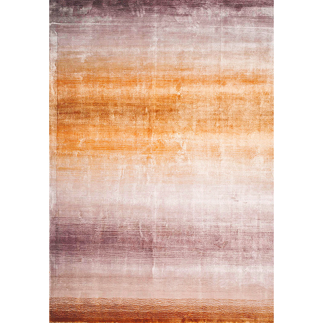 Vloerkleed RIGA in de kleur Oranje spat van de vloer met een levendig kleurverloop van oranje naar roodtinten. Een perfecte keuze voor wie zijn interieur wat extra energie. warmte en spice wil geven.